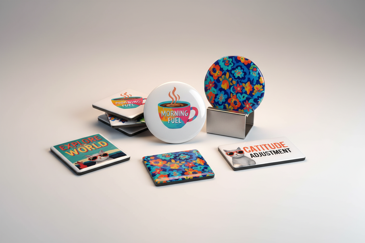 Premium custom magnets featuring your designs with strong magnetic backing. Perfect for promotional giveaways, business cards, or retail merchandise.